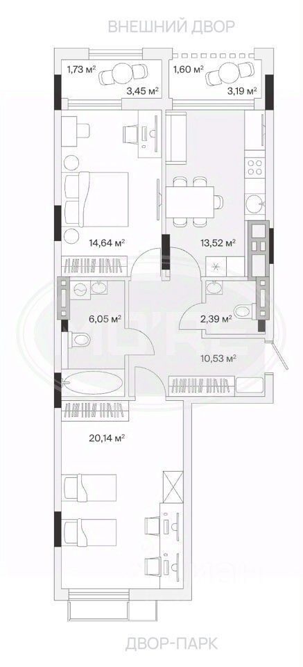 Продается 2-комнатная квартира 70,6 кв.м в ЖК "АЭРО" терминал С