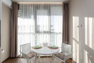 Вид на море и панорамные окна: Просыпайтесь с видом на море и засыпайте под шум прибоя. Огромные окна дарят ощущение простора и света. Никаких балконов — только чистая панорама.