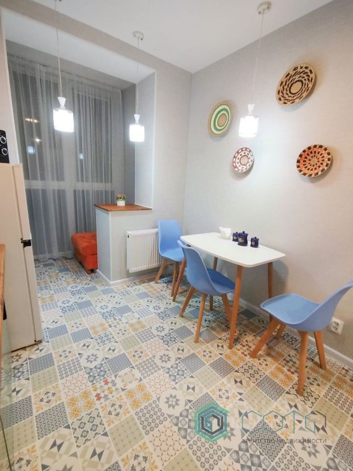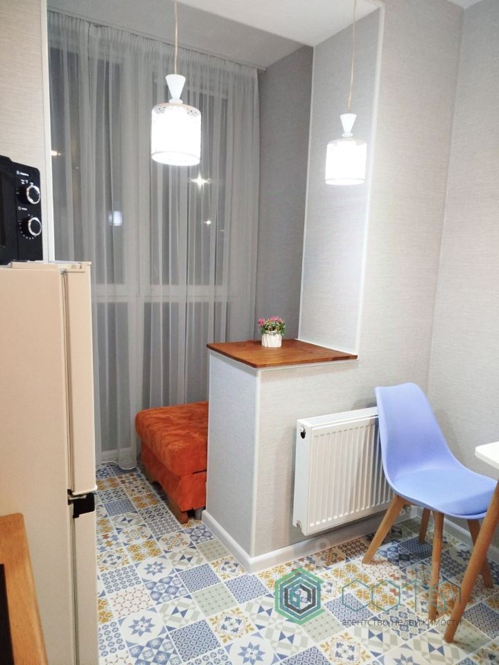 Кухня 7,7 кв.м. - современный кухонный гарнитур со встроенной техникой, столовая зона и выход на лоджию (дополнительное спальное место)