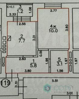Санузел 3,1 кв.м. - оборудован душевой кабиной, стиральной машиной