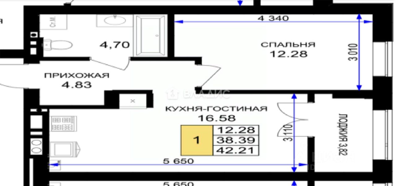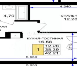 Площадь квартиры составляет 42,21 кв.м., кухня-гостиная 16,58 кв.м., комната 12,28 кв.м., лоджия 3,82 кв.м. Квартира не угловая, установлены стеклопакеты, сан\узел совместный, в квартире будет выполнен качественный "серый ключ", что Вам дает возможность реализовать все Ваши идеи. Квартира подойдет как для молодых людей, так и оптимальный вариант для инвестиции в недвижимость.