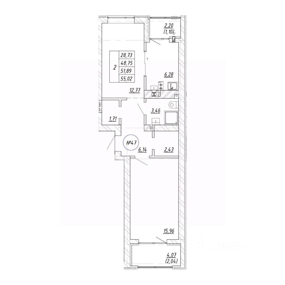 Продаётся 2-комнатная квартира в строящемся доме (Дом 18.1), срок сдачи: II-кв. 2028, общей площадью 55.02 кв.м., на 1 этаже. Новый жилой комплекс "Яркий" от застройщика "СтройИнвестиция" расположен по адресу: Калининградская обл., г. Зеленоградск, ул. Центральная улица.