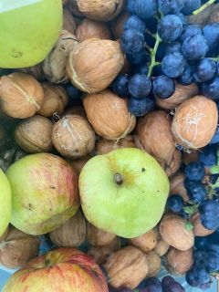 К объекту прилагается благоустроенный земельный участок с плодоносящим садом, где выращиваются яблони, груши, вишни, орех и ягодные кустарники. Инфраструктура участка включает два хозяйственных сарая для инвентаря и подвал для хранения урожая.