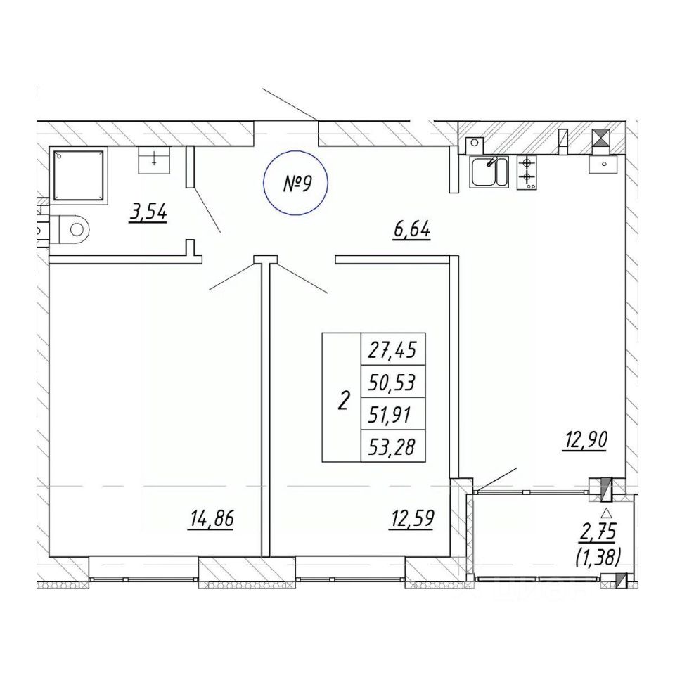 Продаётся 2-комнатная квартира в строящемся доме (Дом 2.3), срок сдачи: IV-кв. 2026, общей площадью 53.28 кв.м., на 1 этаже. Новый жилой комплекс "Яркий" от застройщика "СтройИнвестиция" расположен по адресу: Калининградская обл., г. Зеленоградск, ул. Центральная улица.