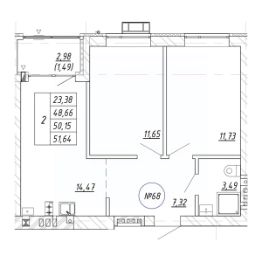 Продаётся 2-комнатная квартира в строящемся доме (Дом 14.2), срок сдачи: II-кв. 2027, общей площадью 51.64 кв.м., на 3 этаже. Новый жилой комплекс "Яркий" от застройщика "СтройИнвестиция" расположен по адресу: Калининградская обл., г. Зеленоградск, ул. Центральная улица.