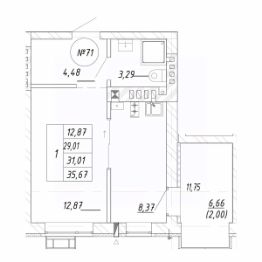 Продаётся 1-комнатная квартира в строящемся доме (Дом 19.3), срок сдачи: II-кв. 2028, общей площадью 35.67 кв.м., на 4 этаже. Новый жилой комплекс "Яркий" от застройщика "СтройИнвестиция" расположен по адресу: Калининградская обл., г. Зеленоградск, ул. Центральная улица.