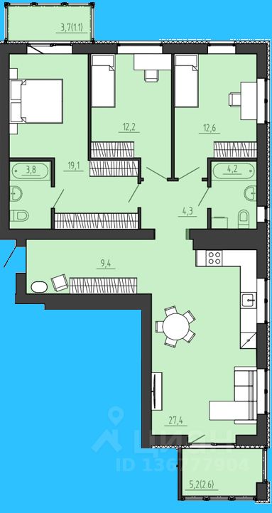 Продаётся 3-комнатная квартира в строящемся доме (Дом 3), срок сдачи: I-кв. 2026, общей площадью 101.9 кв.м., на 3 этаже. Новый жилой комплекс "Дома у сада" от Специализированного застройщика "А Плюс" расположен в г. Калининград на ул. Толстикова.