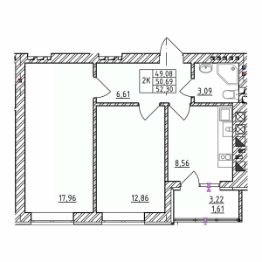 Продаётся 2-комнатная квартира в строящемся доме (Дом 3.3), срок сдачи: III-кв. 2026, общей площадью 52.3 кв.м., на 7 этаже. Новый жилой комплекс "Комфорт" от застройщика "СтройИнвестиция" расположен по адресу: г. Зеленоградск, посёлок Вишнёвое, Лесная улица.