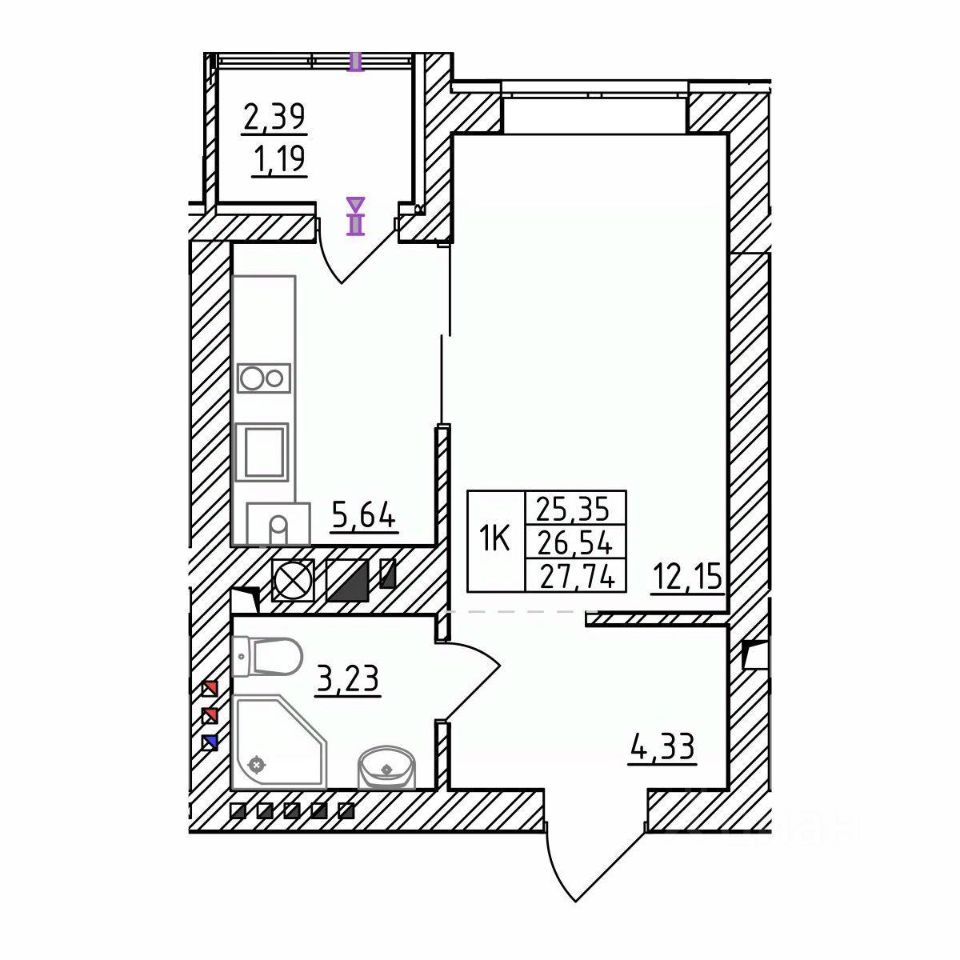 27,74 м²