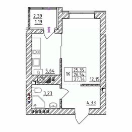 Продаётся 1-комнатная квартира в строящемся доме (Дом 3.3), срок сдачи: III-кв. 2026, общей площадью 27.74 кв.м., на 5 этаже. Новый жилой комплекс "Комфорт" от застройщика "СтройИнвестиция" расположен по адресу: г. Зеленоградск, посёлок Вишнёвое, Лесная улица.