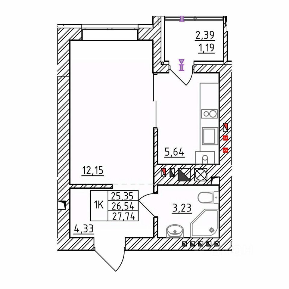 Продаётся 1-комнатная квартира в строящемся доме (Дом 3.3), срок сдачи: III-кв. 2026, общей площадью 27.74 кв.м., на 7 этаже. Новый жилой комплекс "Комфорт" от застройщика "СтройИнвестиция" расположен по адресу: г. Зеленоградск, посёлок Вишнёвое, Лесная улица.