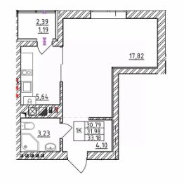 Продаётся 1-комнатная квартира в строящемся доме (Дом 3.3), срок сдачи: III-кв. 2026, общей площадью 33.18 кв.м., на 7 этаже. Новый жилой комплекс "Комфорт" от застройщика "СтройИнвестиция" расположен по адресу: г. Зеленоградск, посёлок Вишнёвое, Лесная улица.