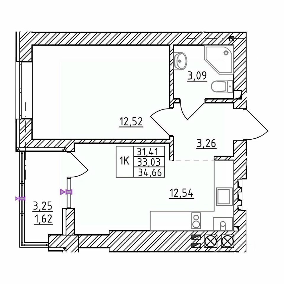 Продаётся 1-комнатная квартира в строящемся доме (Дом 3.3), срок сдачи: III-кв. 2026, общей площадью 34.66 кв.м., на 1 этаже. Новый жилой комплекс "Комфорт" от застройщика "СтройИнвестиция" расположен по адресу: г. Зеленоградск, посёлок Вишнёвое, Лесная улица.