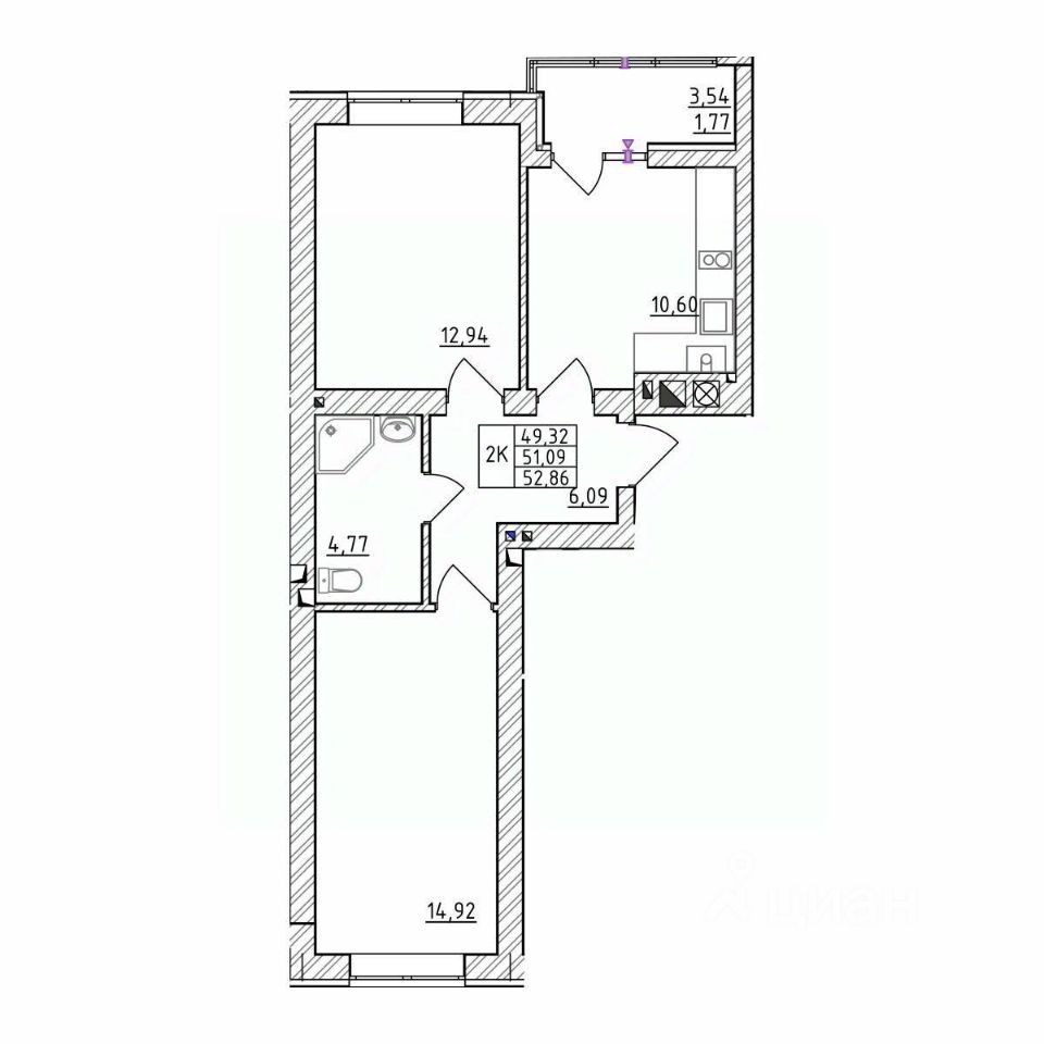 52,86 м²