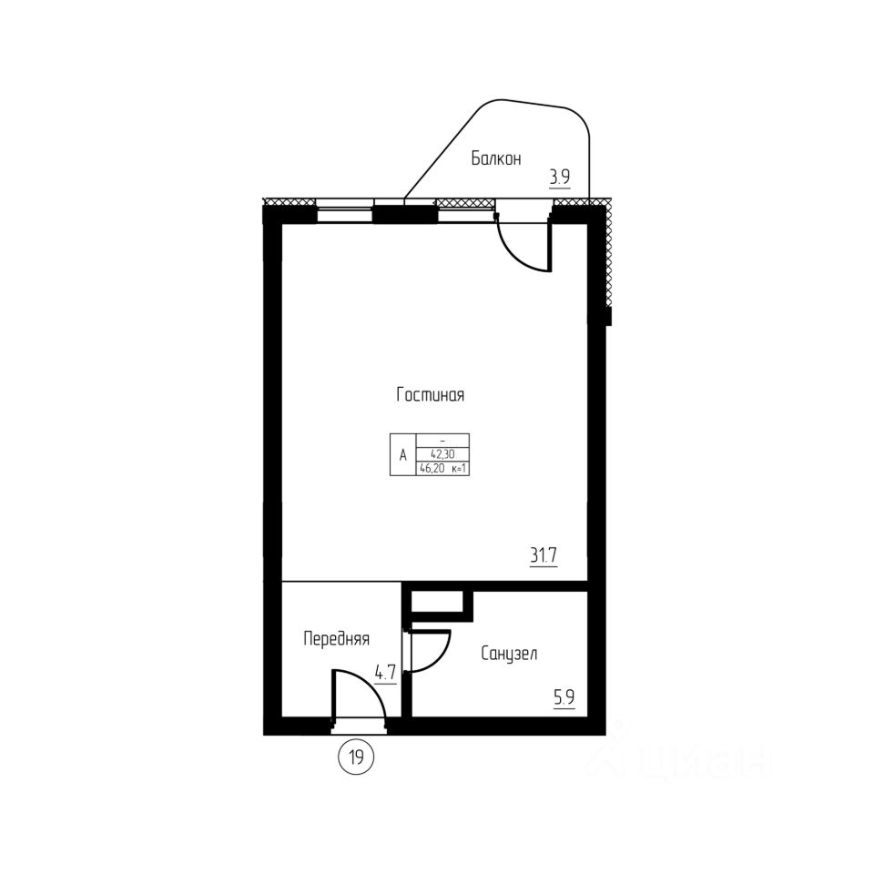 Общая площадь46,2 м²