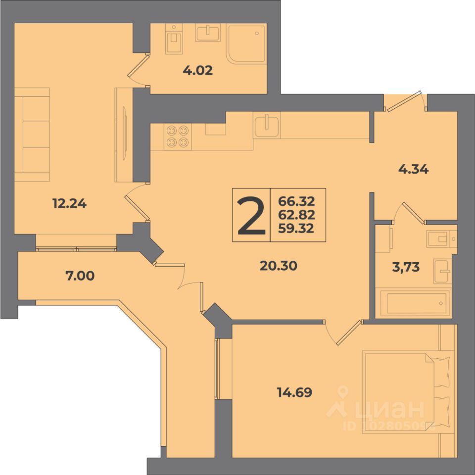 Общая площадь66,32 м²
