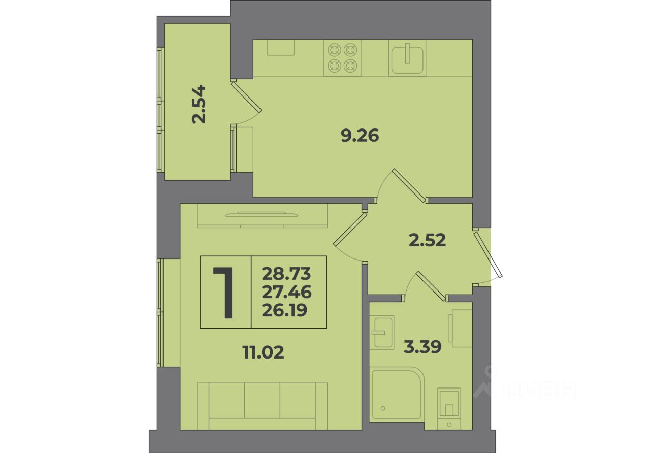 28,73 м²