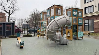- Детская площадка и мини-фонтан во дворе