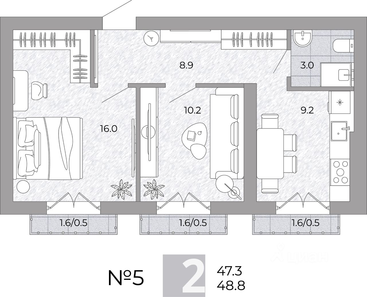 Общая площадь48,8 м²
