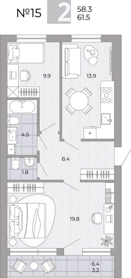 Общая площадь61,5 м²