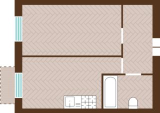 Предчистовая — остаётся установить сантехнику, розетки, двери и навести красоту: поклеить обои и уложить на пол покрытие