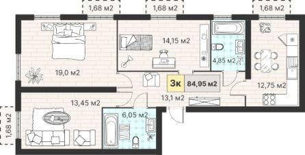 84,95 м²