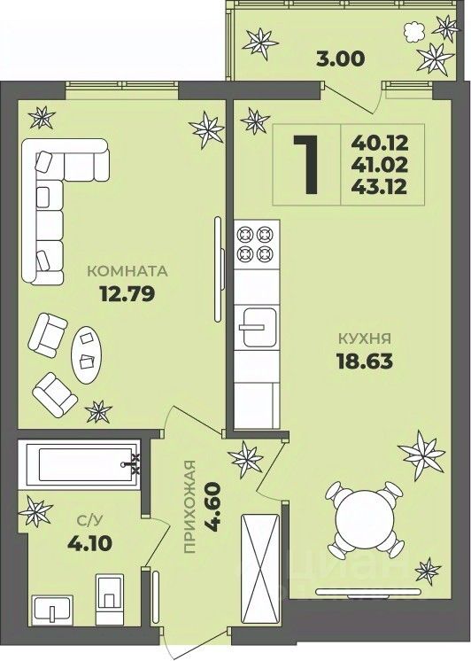 Продаётся 1-комнатная квартира в строящемся доме (Дом 2), срок сдачи: II-кв. 2027, общей площадью 41.02 кв.м., на 5 этаже. ЖК "ГРИНВУД".