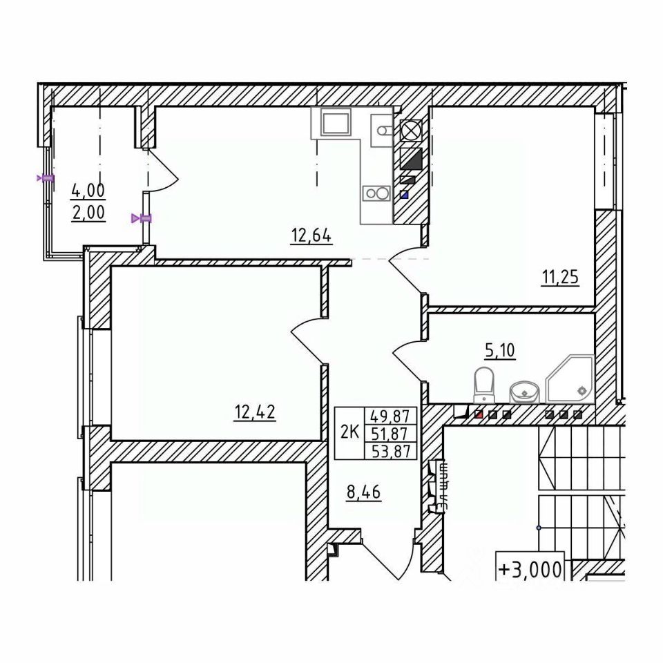 Продается 2-комн. квартира, 51,87 м²