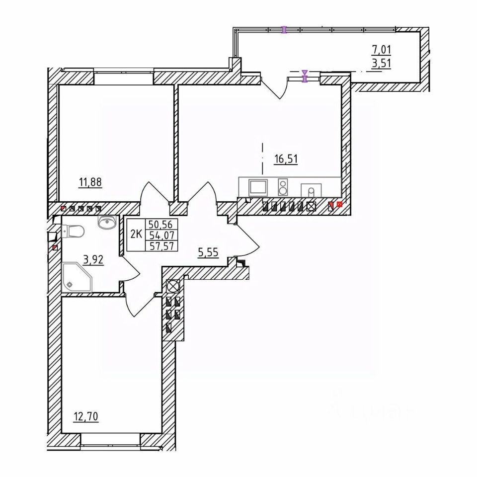 Общая площадь54,07 м²