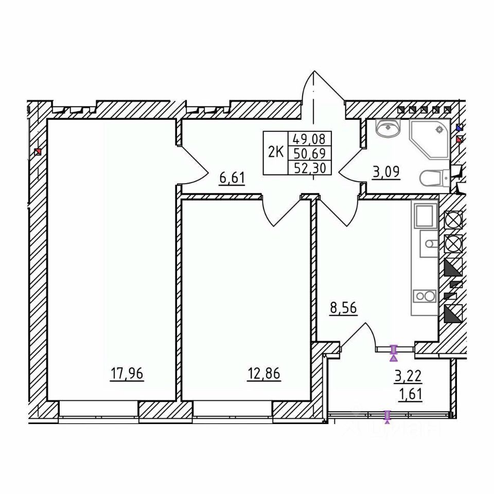 Продается 2-комн. квартира, 50,69 м²
