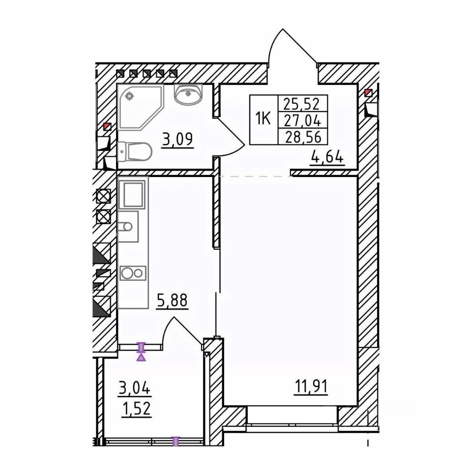 Общая площадь27,04 м²
