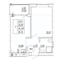Продается 1-комн. квартира, 34,48 м²