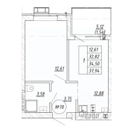 Продается 1-комн. квартира, 34,36 м²