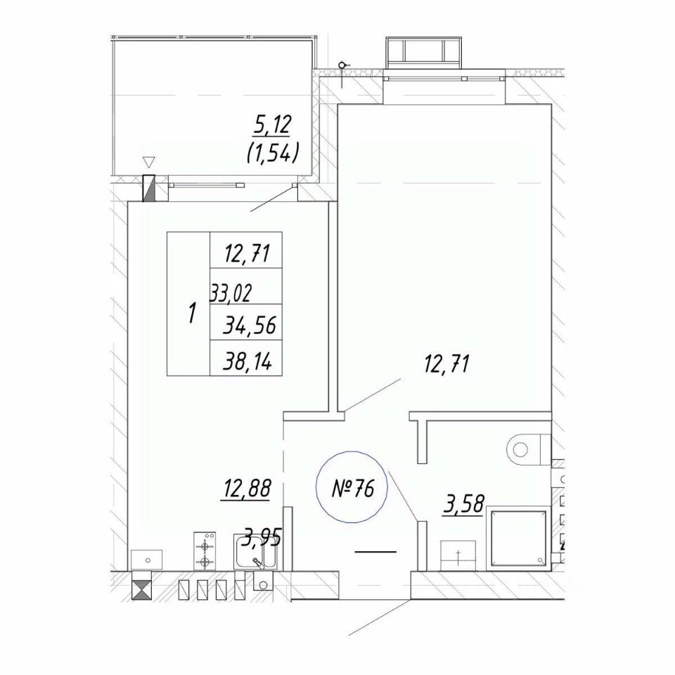 Общая площадь34,56 м²
