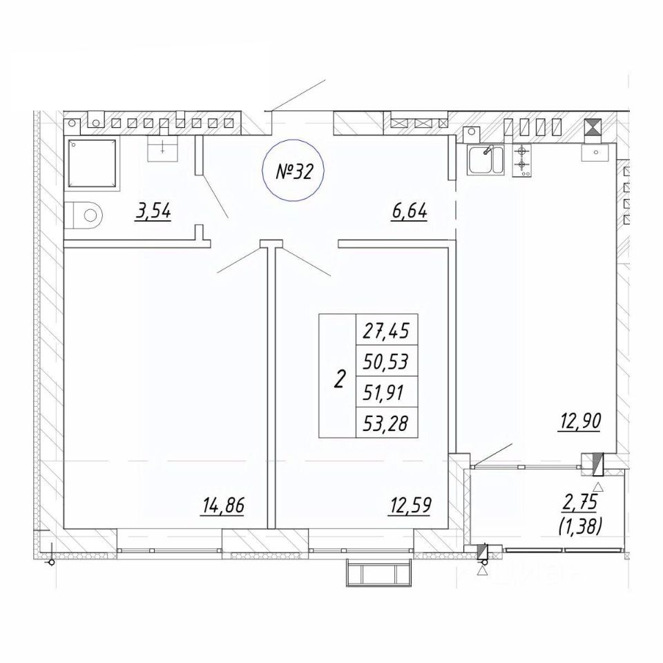 Продается 2-комн. квартира, 51,91 м²