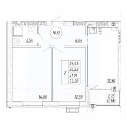 Общая площадь51,91 м²