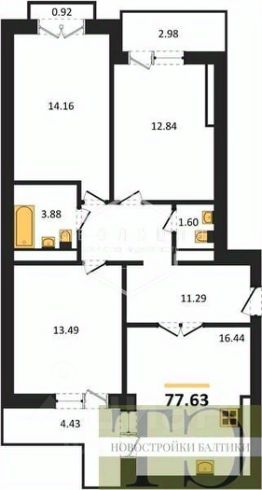 Квартира: 3 к 77,63 кв.м., 9 этаж в комплексе Суздальский 3, 3 очередь, корп.3.2, сдача: 4кв. , этажей: 9, адрес Калининград г., Суздальская ул., , Застройщик: Модуль-Стройград.