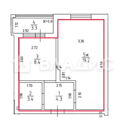 Площадь лоджия с панорамным остеклением - 3,3 кв.м