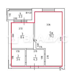 Общая площадь квартиры - 35,3 кв.м (с учетом лоджия - 38,6 кв.м)