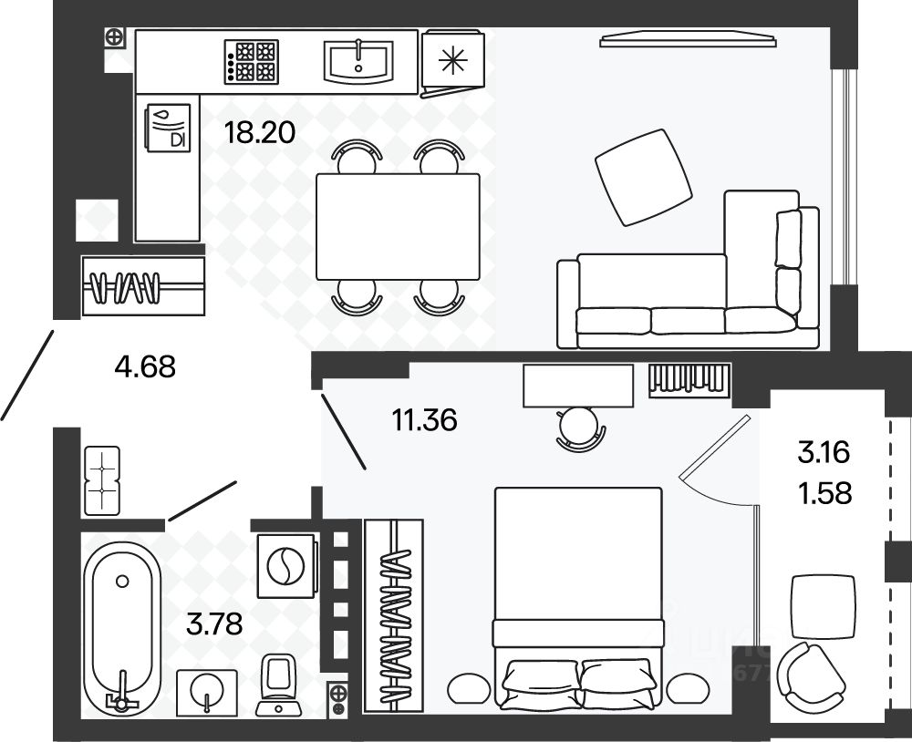 Жилая площадь11,4 м²
