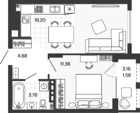 Площадь кухни18,2 м²