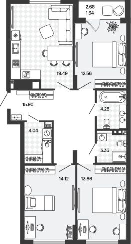 88,94 м²