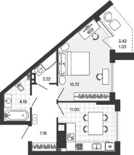 15,7 м²
