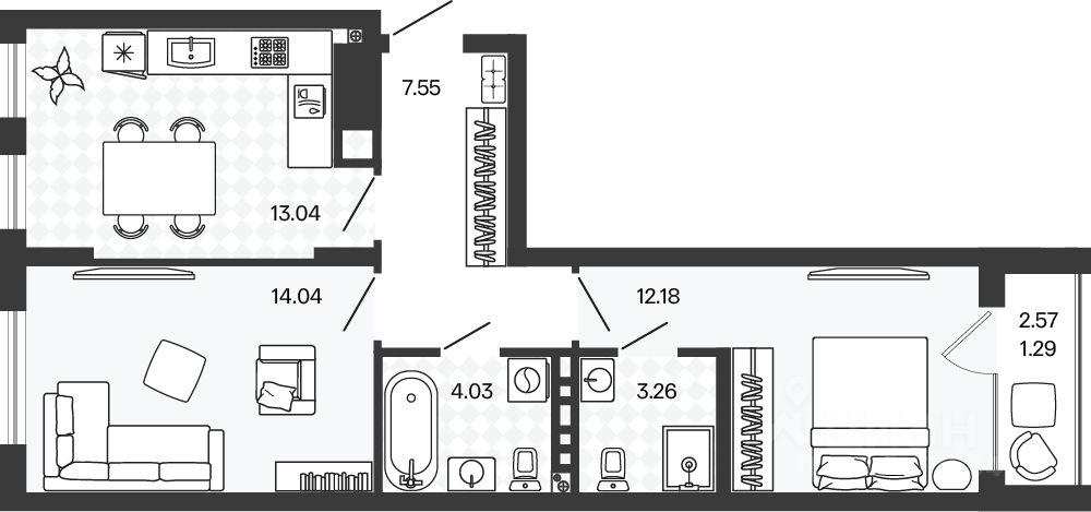 Общая площадь55,45 м²