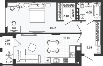 53,69 м²