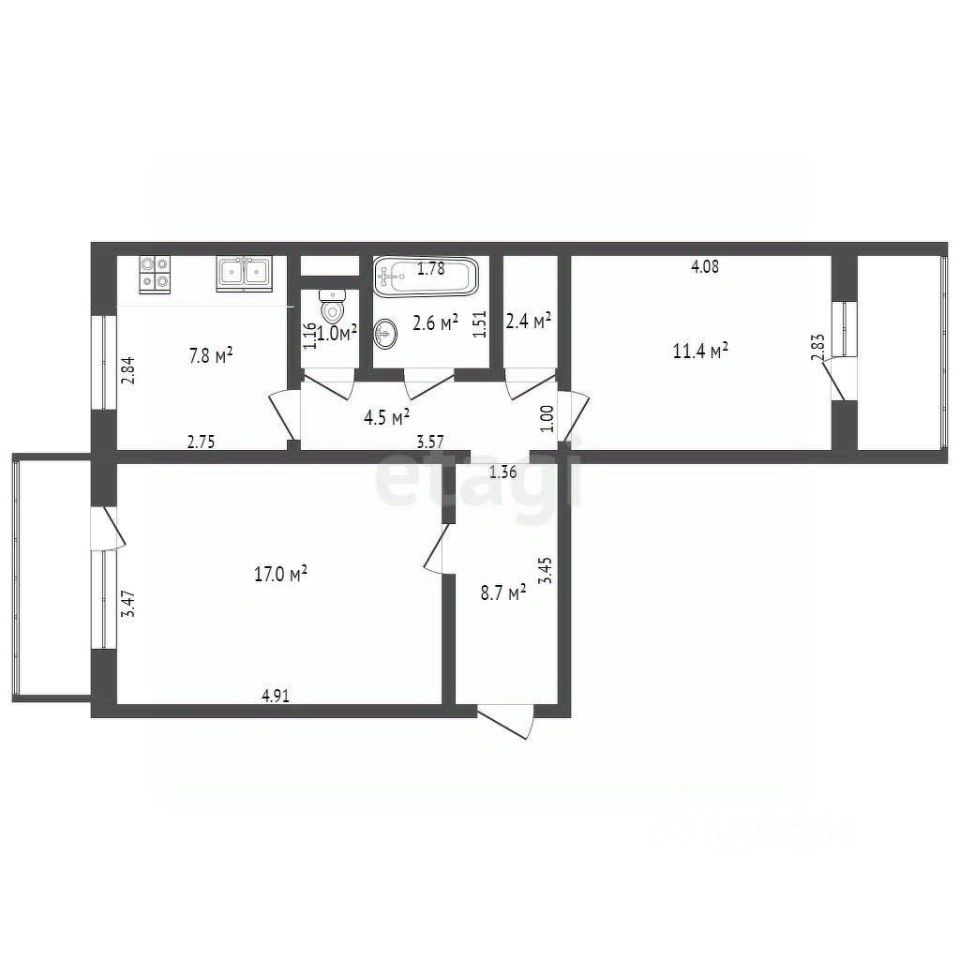- Комфортные условия: квартира располагается на тихой улице (нет шума с дорог), окна выходят на две стороны, обеспечивая достаточное количество естественного света.