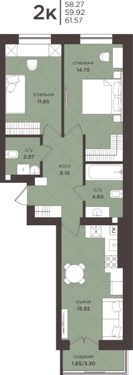 Продаётся 2-комнатная квартира в строящемся доме (ГП-1), срок сдачи: IV-кв. 2027, общей площадью 59.92 кв.м., на 1 этаже. БEСПPОЦEНTНAЯ ДОЛГOCPОЧНAЯ PАCСРОЧKA ОТ ЗАCТРOЙЩИKА дo 31.03.2027 годa с пepвoначaльным взноcом 30%. Без ежемесячных платежей и с фиксацией цены.