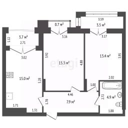 изолированные комнаты - 13.4 кв.м. + 15.3 кв.м.