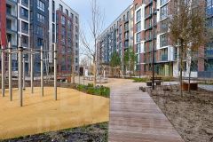 В жилом комплексе учтены все детали, а общественное пространство как в зданиях, так и на прилегающей территории организовано для максимального комфорта жильцов - это и двор без машин, и кладовые помещения (приобретаются отдельно), зоны для работы и отдыха, детские и спортивные площадки, зона барбекю, площадка для выгула животных, а также круглосуточное видеонаблюдение на территории и в подъездах.