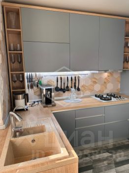 — Кухня в тёплых тонах со всей техникой: варочная панель, духовой шкаф, микроволновка, холодильник, посудомойка — всё остаётся!